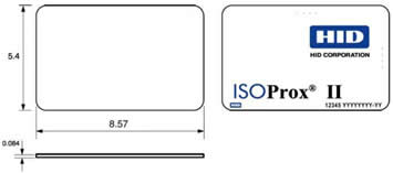 HID: ISOProx II - программируемая, тонкая, proximity карта с возможностью нанесения изображений на принтере, размеры 5.40х8.57х0.09 см, материал карты - PVC, лицевая и оборотная стороны белые глянцевые, внешняя нумерация